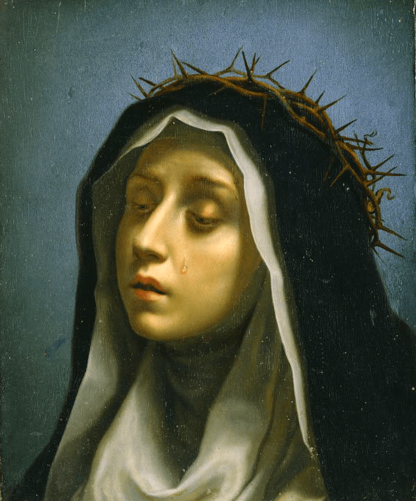 Saint Catherine of Siena (1665–1670), oil on panel by Carlo Dolci in the Dulwich Picture Gallery. George Moore visited the Gallery while planning his duology Evelyn Innes and Sister Teresa; he also situated parts of the story there.