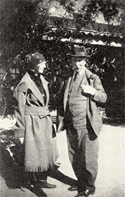 Captioned G.M and Nancy Cunard at Sanary, winter 1921-22. George Moore full-length standing on a terrace, half-turned to his right and smiling. Nancy Cunard stands on Moore’s right looking at him.