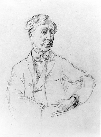 This unsigned portrait was first attributed to William Rothenstein in the Book Buyer (November 1901), presumably based on advertising received from the publisher. It was later attributed to Henry Tonks by Helmut Gerber in George Moore in Transition (Detroit: 1968, page 213), based on an undated letter from Moore to his publisher.