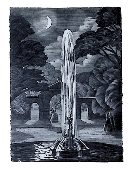 DEAR LADY OF MY THOUGHTS, DEAR LADY CUNARD, TIME TURNS ALL THINGS INTO ANALOGUES AND SYMBOLS, AND IN THE COURSE OF THE YEARS I HAVE COME TO THINK OF YOU AS AN EVENING FOUNTAIN UNDER EMBOSOMING TREES. THE FOUNTAIN MURMURS, SINGS, EXULTS ; IT WELCOMES EVERY COMING MINUTE; AND WHEN THE DUSK DEEPENS IN THE GARDEN AND THE GALLANTS ENFOLD THEIR LADIES IN SCARVES AND VEILS AND THE ROUT DISPERSES, THE FOUNTAIN SINGS ALONE THE SORROWS OF THE WATER-LILIES TO THE MOON.