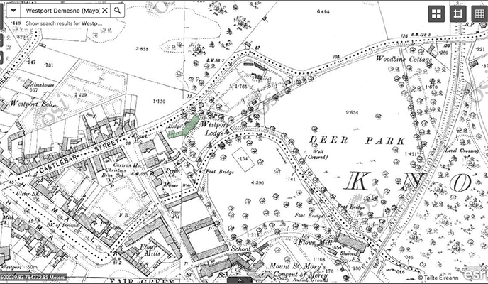 Overlooking the Carrowbeg River, about one mile from Westport House, George Moore wrote from Westport Lodge 1915-1917. He was there visiting his friend and former property manager Thomas Fair Ruttledge (1855-1925), who owned the Lodge until his death.