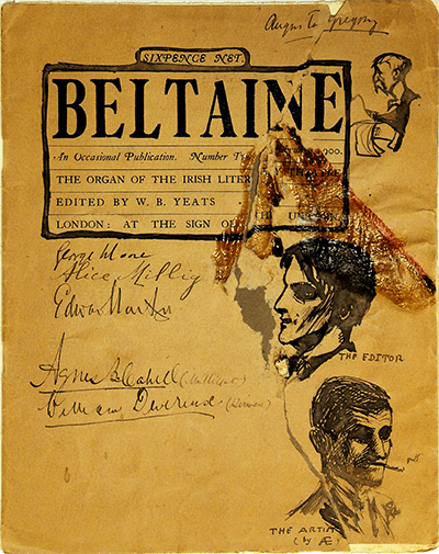 The Beltaine tagline was The organ of the Irish Literary Theatre. Moore returned to Ireland in February 1900 for a performance of his play, The Bending of the Bough. In March 1900 he sent an inflammatory letter to the United Irishman, condemning the Queen’s plan to visit Ireland.