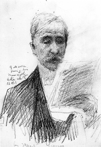 Inscribed August 1st, 1905. George Moore half-length half-turned to his right. Captioned In the collection of John Quinn, Esq.